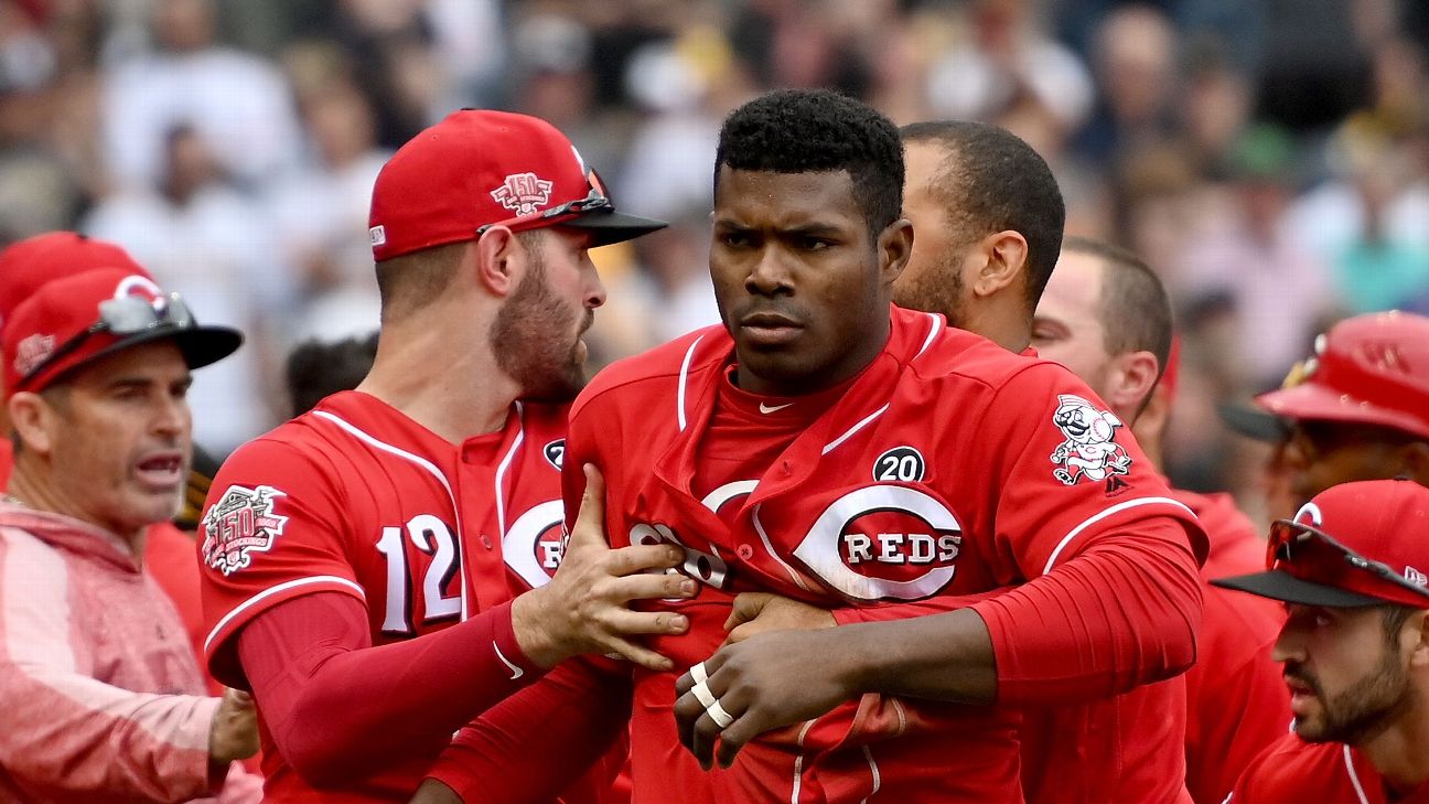 El jardinero de los Rojos reaccionó con molestia al lanzamiento que el abridor de Pittsburgh, Chris Archer, hizo a la espalda de su compañero Derek Dietrich.