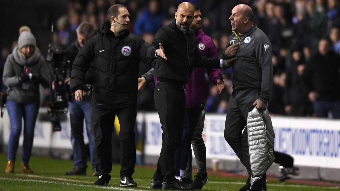 Los entrenadores del Manchester City y Wigan se enfrentaron en los vestuarios durante el medio tiempo en el compromiso de la FA Cup.